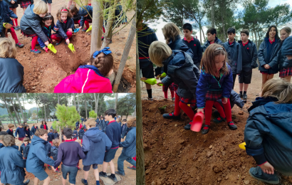 Today we celebrated the Tree Festival at school with the representation of the story “The tree that had no leaves” and the tree dance by the 6th grade students. The boys and girls of I4 have planted two new trees: two pines, and have sung the song “I have a tree friend”.